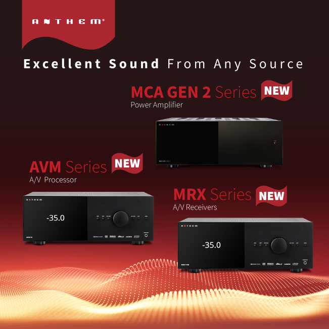 P&O Hi-Fi Company Limited 將為本地影音發燒友引入 Anthem 最新影音產品,包括升級至 ARC Genesis 尊尚空間聲學校正系統的 MRX 系列 AV影音擴音機 (MRX 1140/740/540) ,和環繞聲前級處理器 AVM90、AVM 70,以及 MCA 系列多聲道後級擴音機 (MCA 525/325/225)